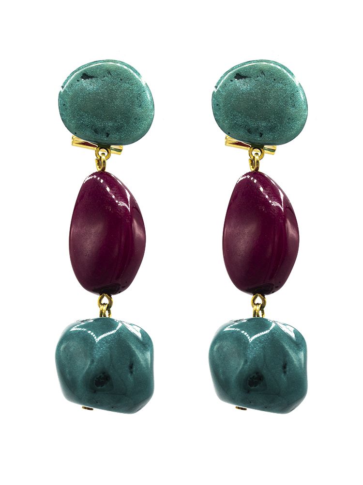 Pendiente de flamenca mediano piedras nácar color aguamarina y buganvilla