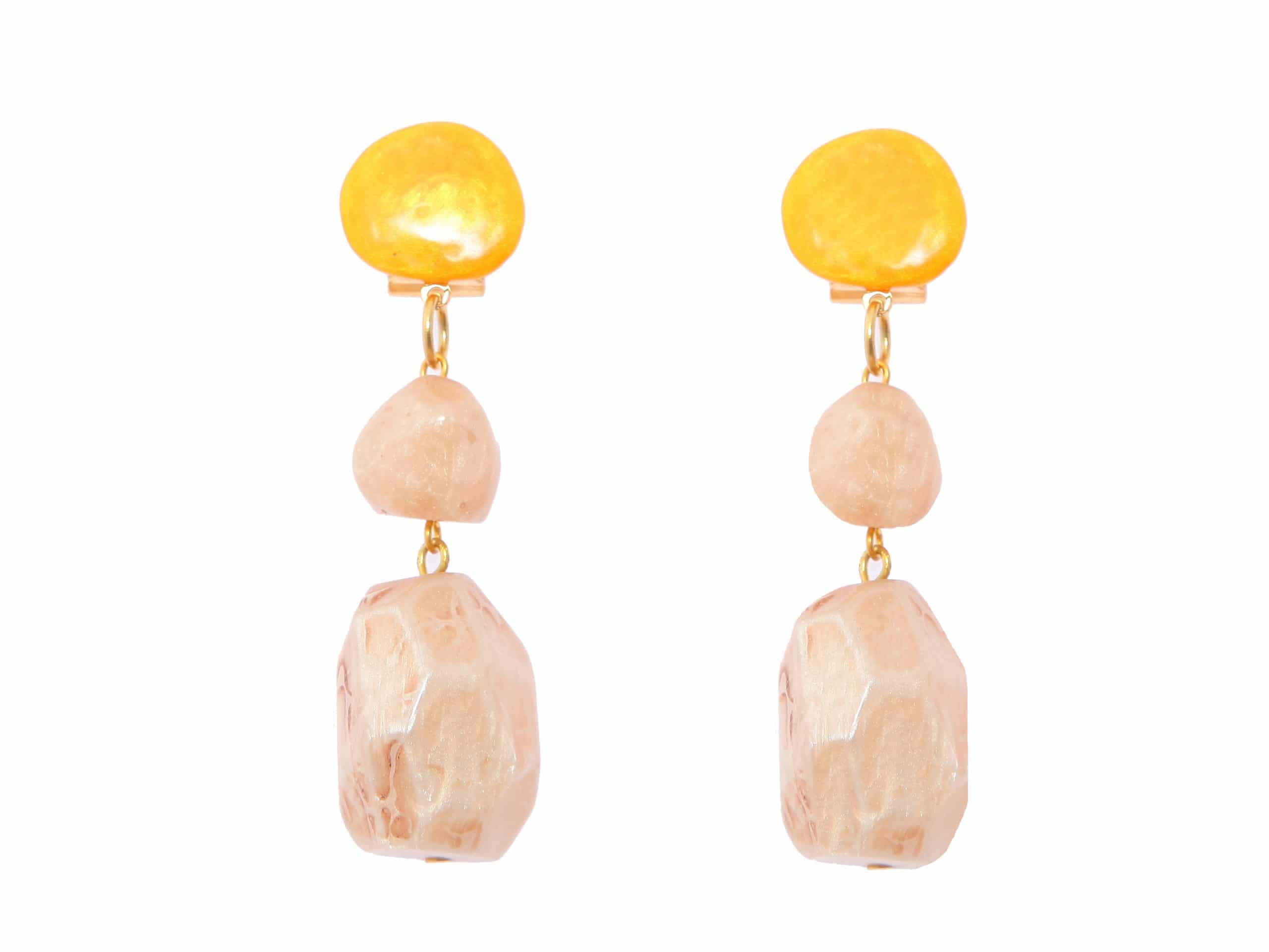 Pendiente de flamenca mediano piedras nácar color beige y mostaza