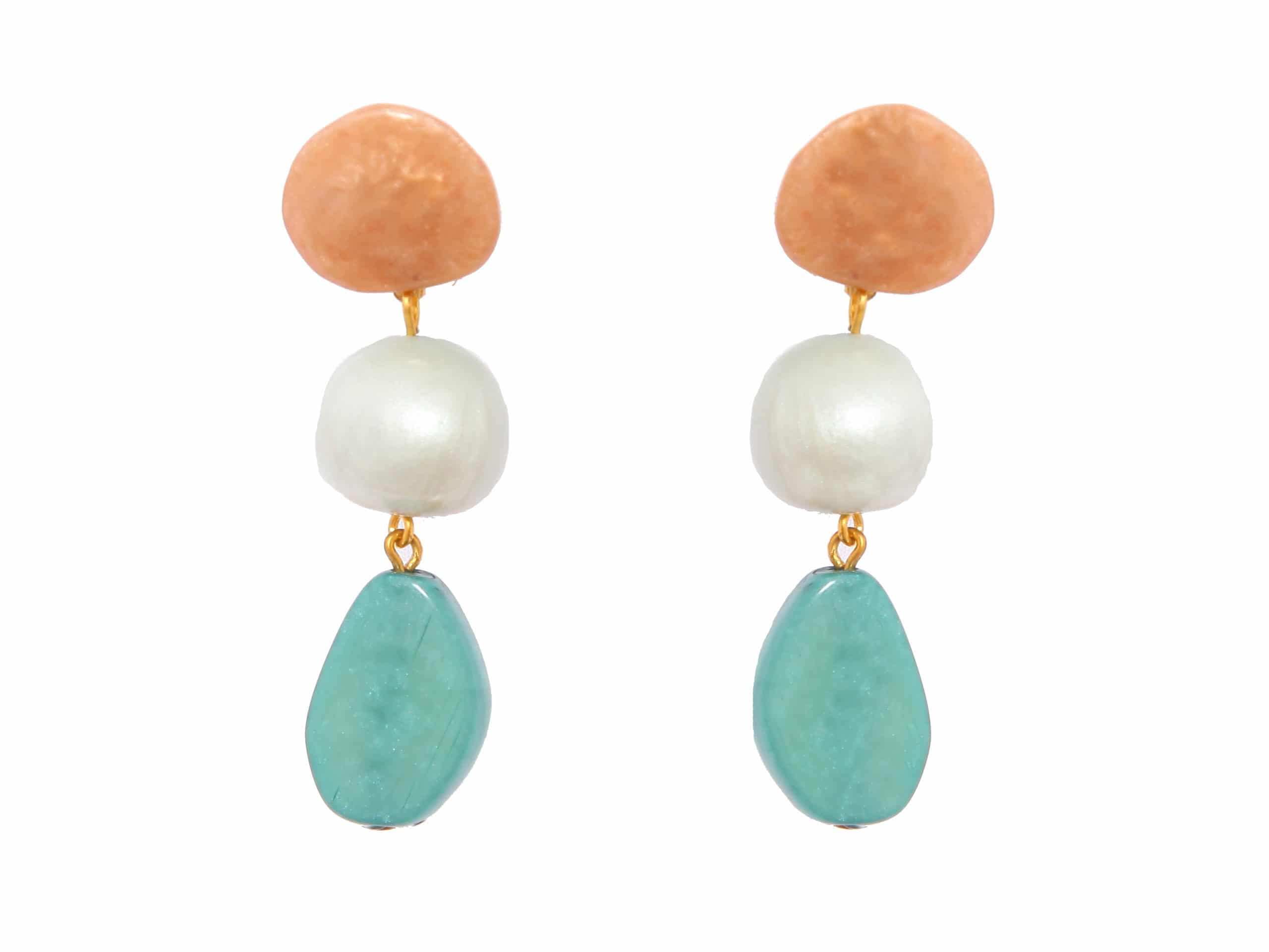 Pendiente de flamenca mediano piedras nácar color beige y verde agua