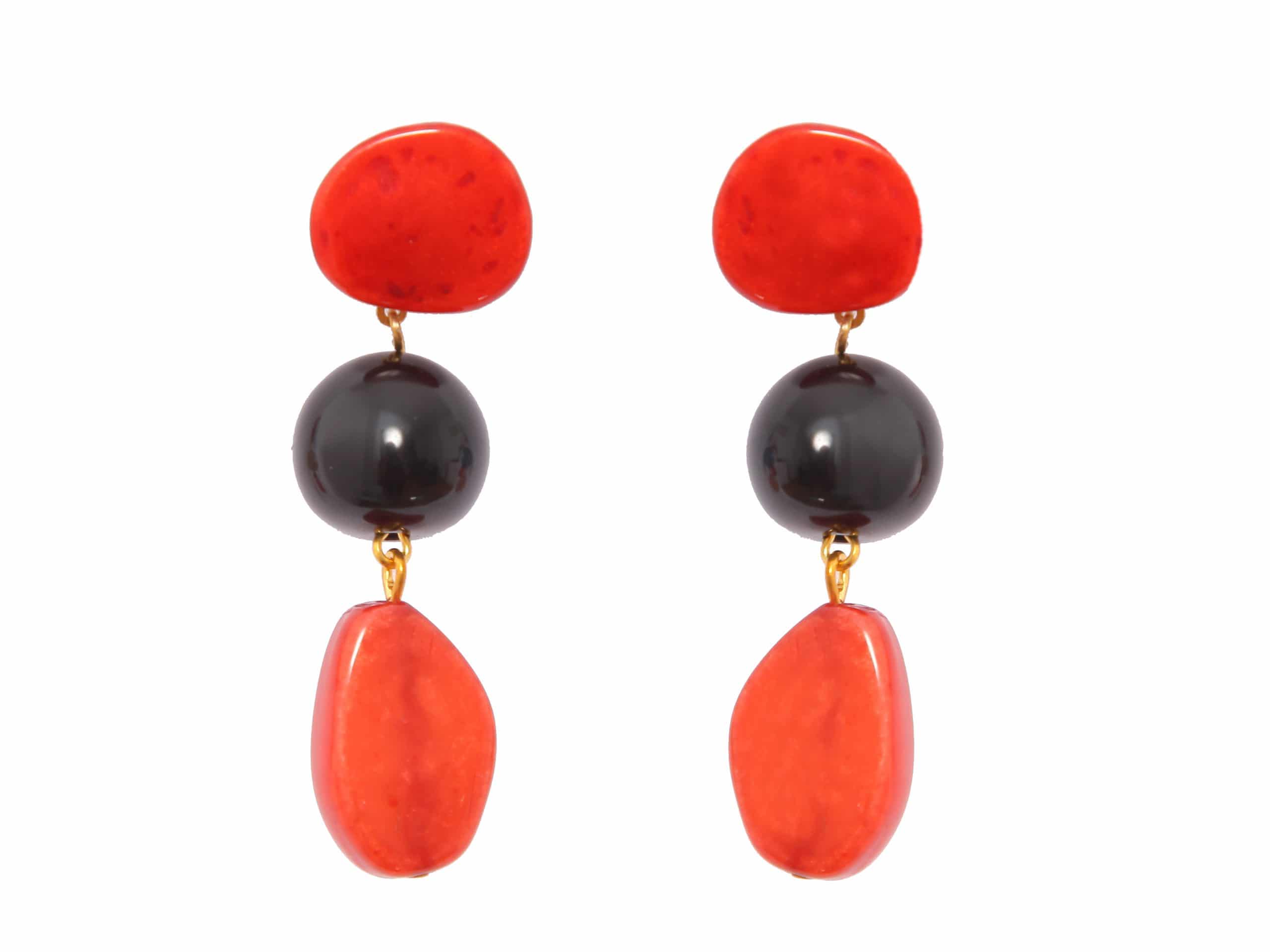 Pendiente de flamenca mediano piedras nácar color coral y negro