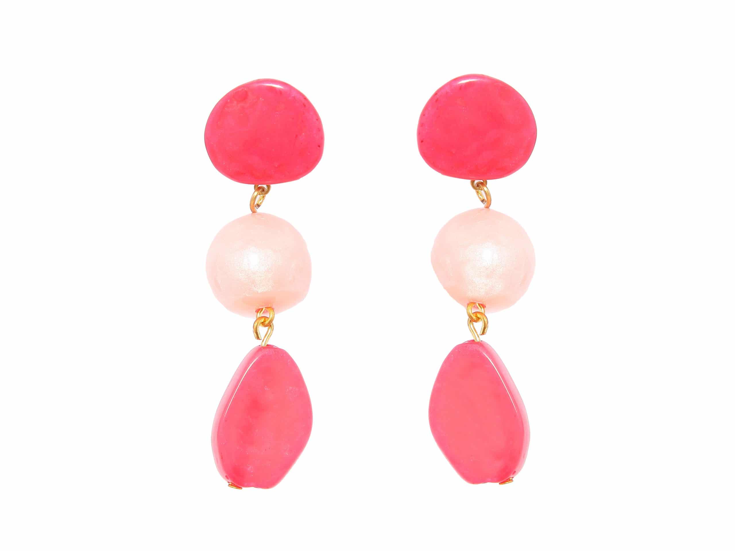 Pendiente de flamenca mediano piedras nácar color fresa y rosa bebé