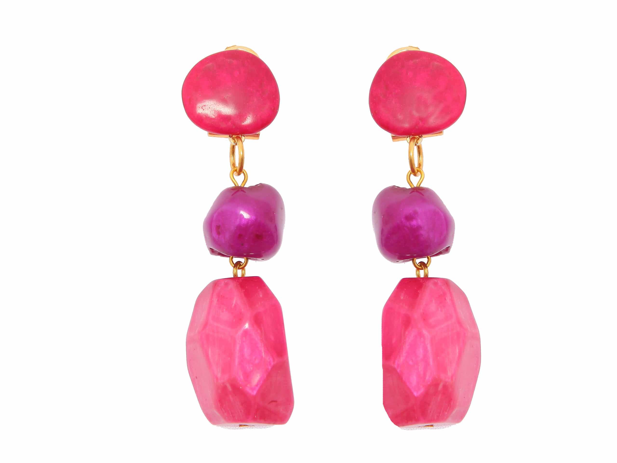 Pendiente de flamenca mediano piedras nácar color morado y buganvilla