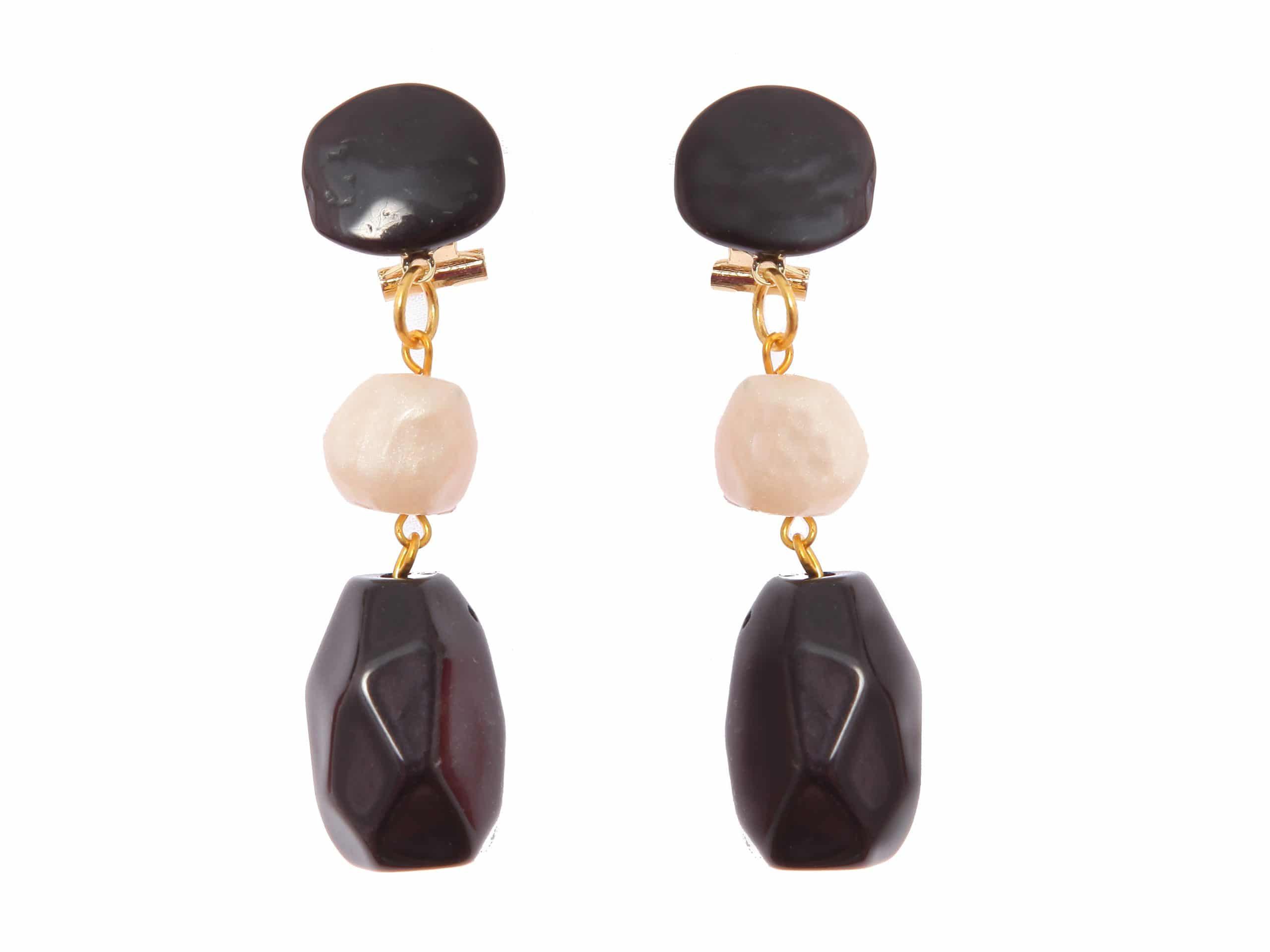 Pendiente de flamenca mediano piedras nácar color negro y marfil