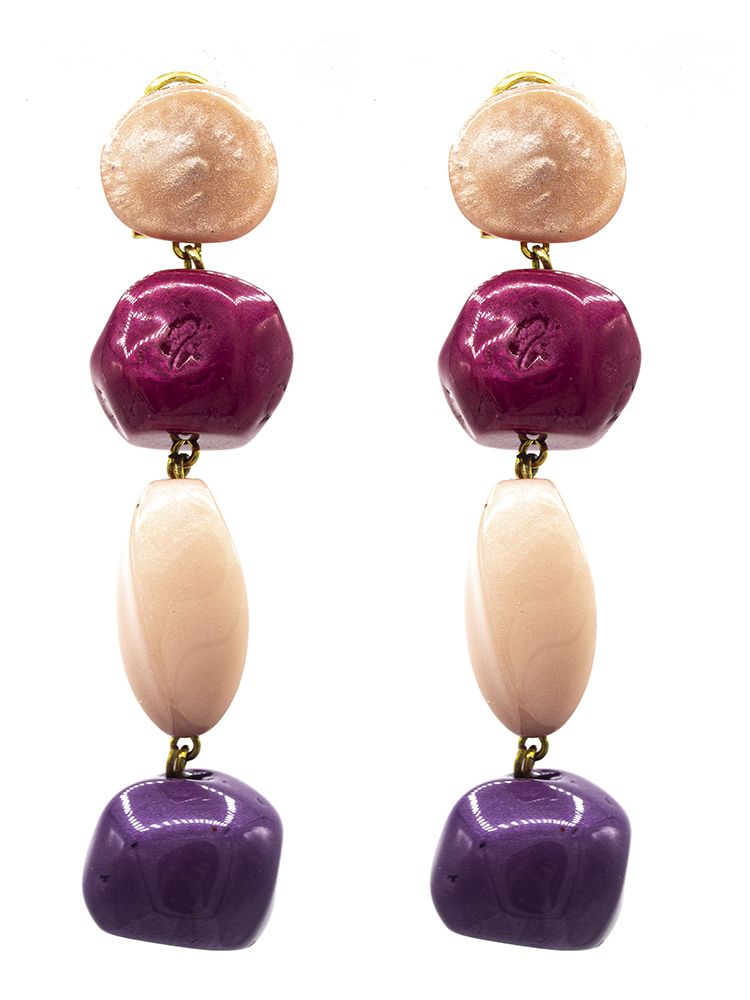 Pendiente de flamenca mediano piedras nácar color rosa bebé, buganvilla y morado