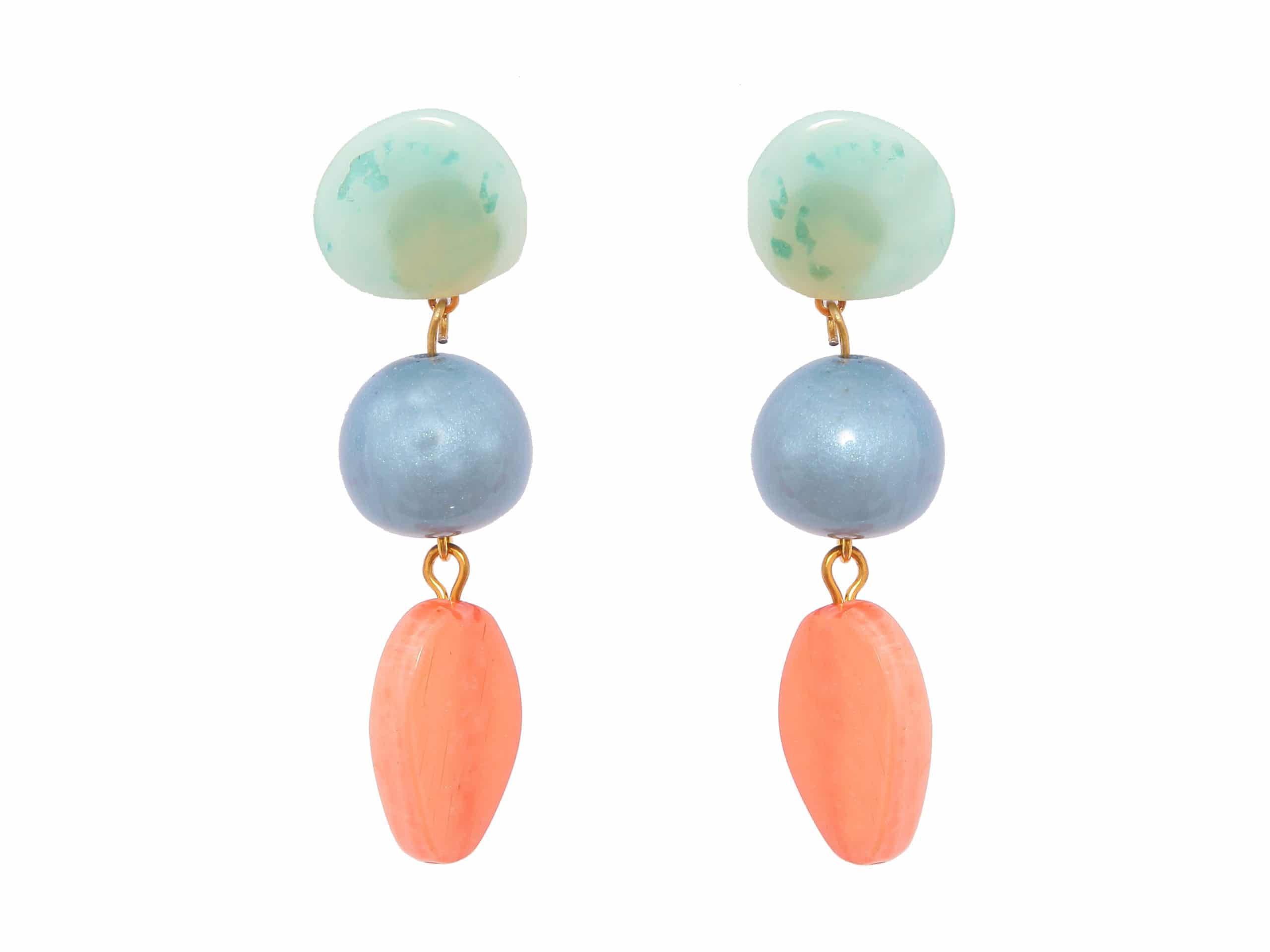 Pendiente de flamenca mediano piedras nácar color verde agua, azul azafata y rosa