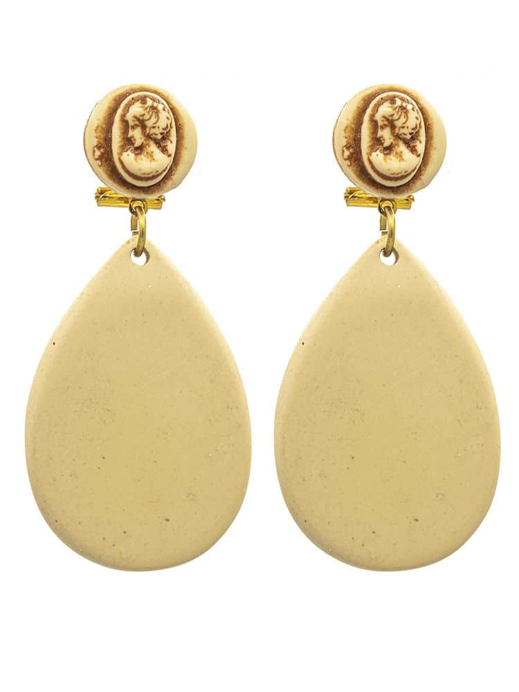 Pendiente de flamenca resina de lágrima pequeña marfil