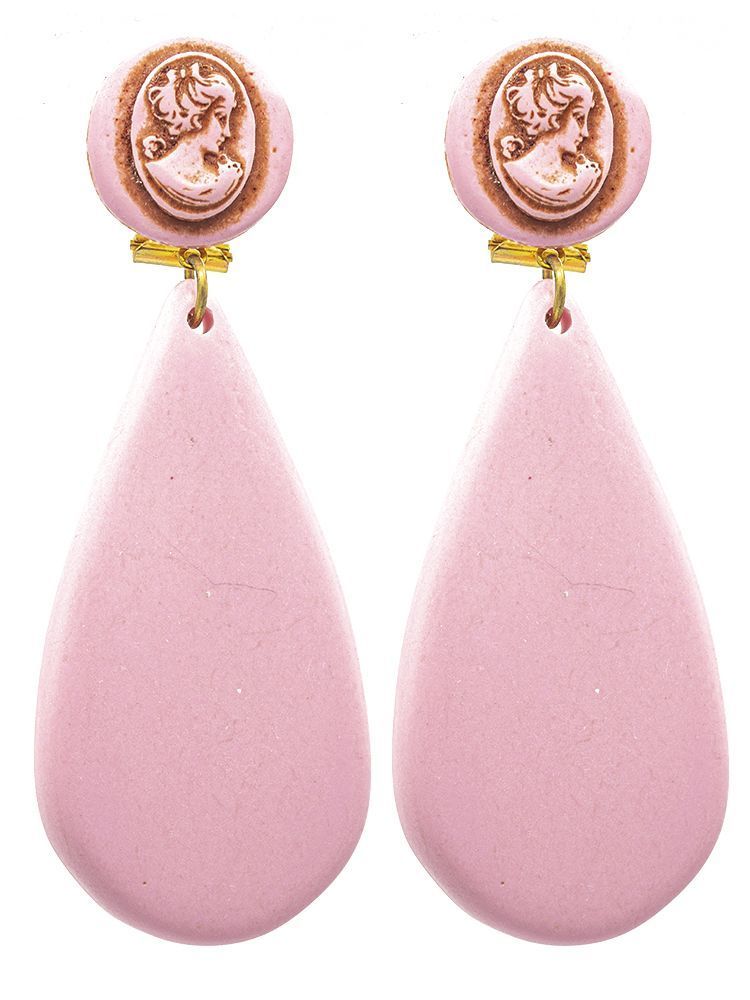 Pendiente de flamenca en forma de lágrima, de resina, en color rosa, con adorno en el cabezal y unas medias de 60 x 30 mm (sin cabezal). Fabricado artesanalmente en Sevilla.