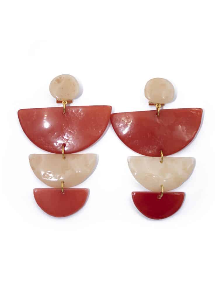 Pendiente de flamenca semicírculos escalonado grande piedras cristal color coral y beige