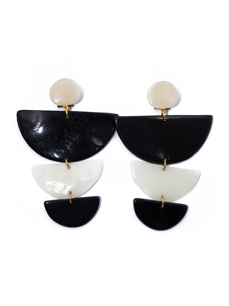 Pendiente de flamenca semicírculos escalonado grande piedras cristal color negro y marfil