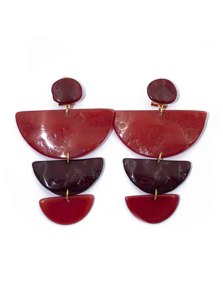 Pendiente de flamenca semicírculos escalonado grande piedras cristal color rojo y burdeos