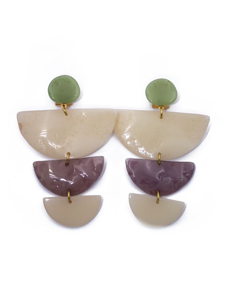 Pendiente de flamenca semicírculos escalonado grande piedras cristal color verde agua, beige y maquillaje