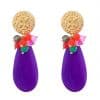 Pendientes de bolas Ágata y lágrimas multicolores en tonos malva con cabezal de aro