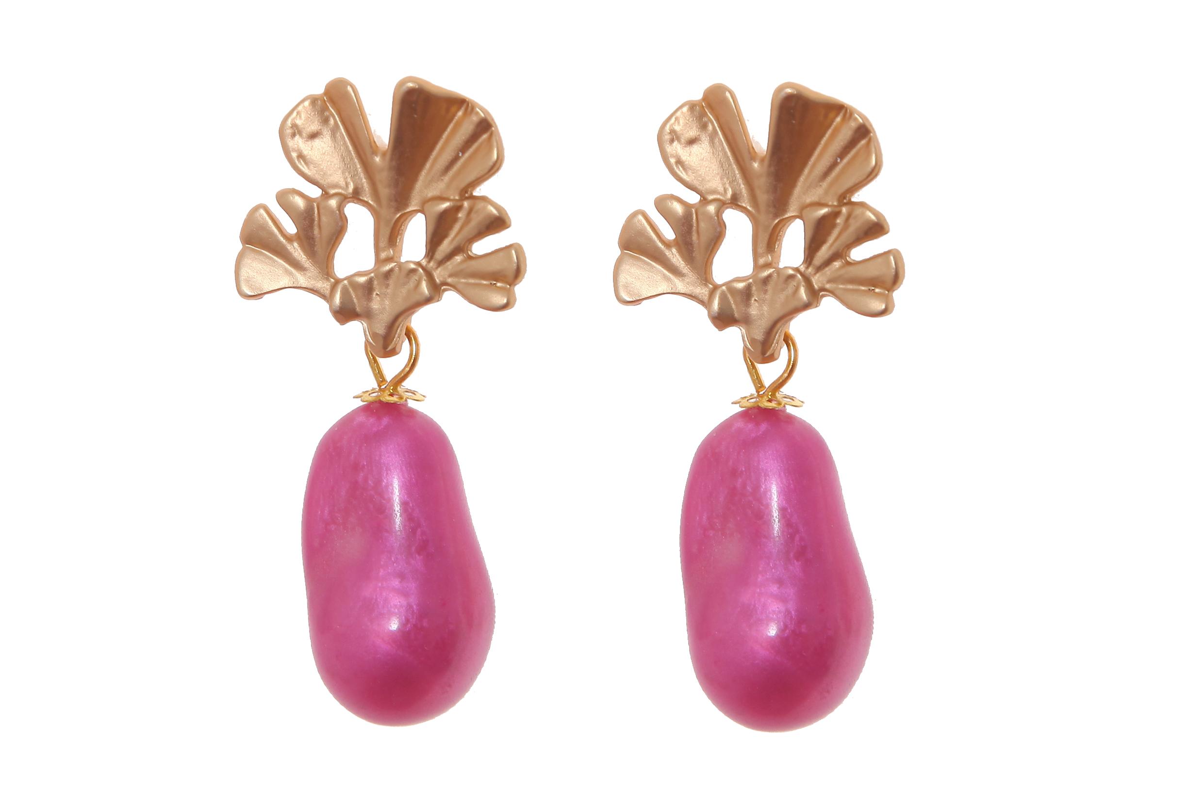 Pendiente de piedras nácar buganvilla con cabezal de hojas