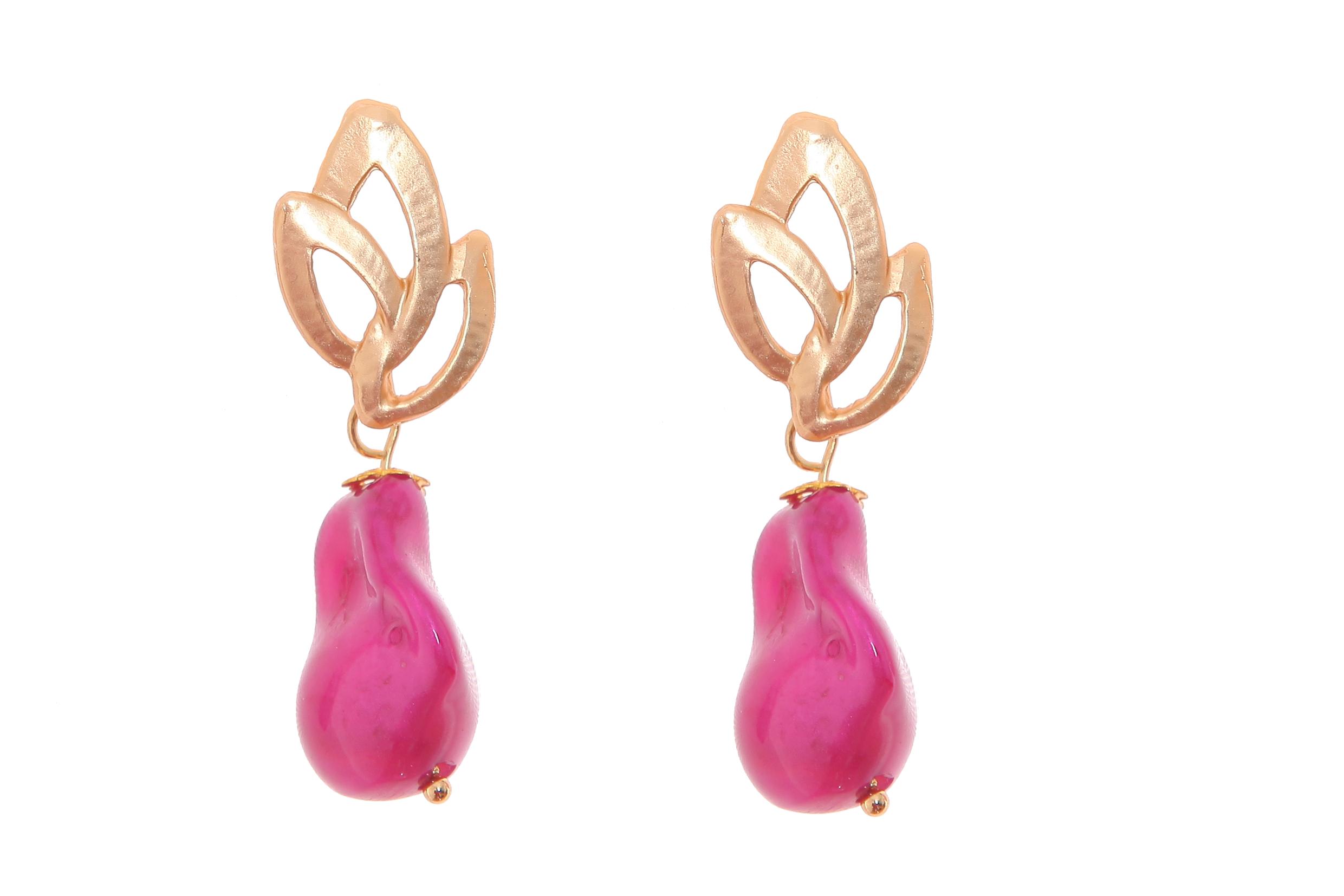 Pendiente de piedras nácar buganvilla con cabezal de hojas