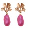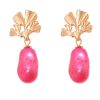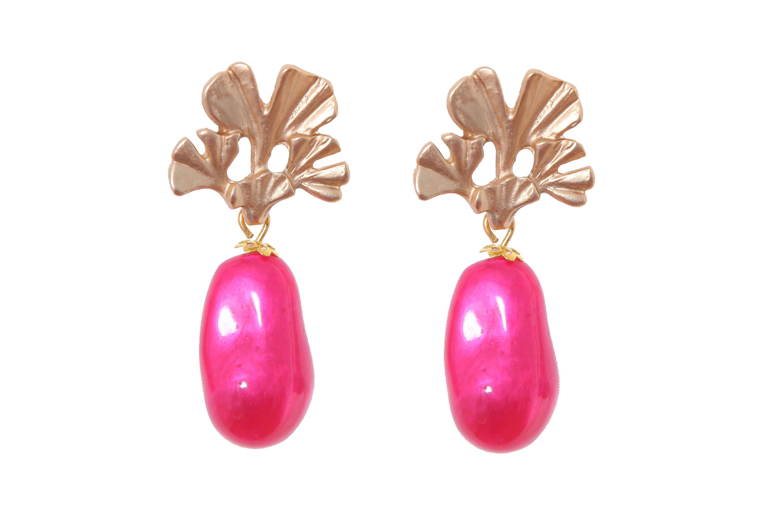 Pendiente de piedras nácar fucsia con cabezal de hojas
