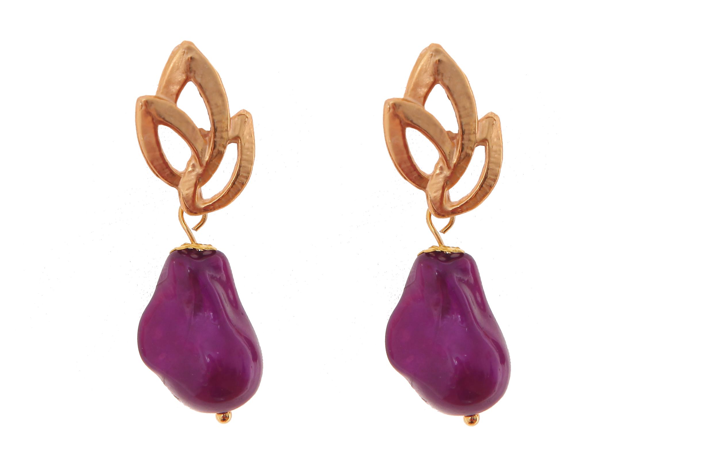 Pendiente de piedras nácar morado con cabezal de hojas