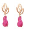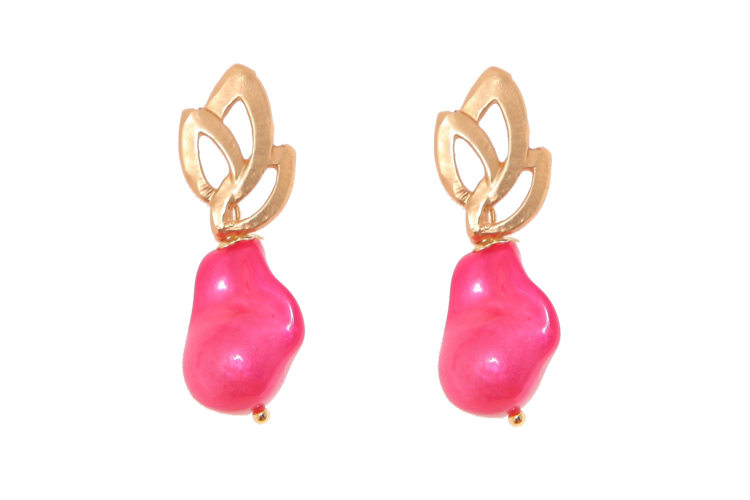 Pendiente de piedras nácar rosa fresa con cabezal de hojas