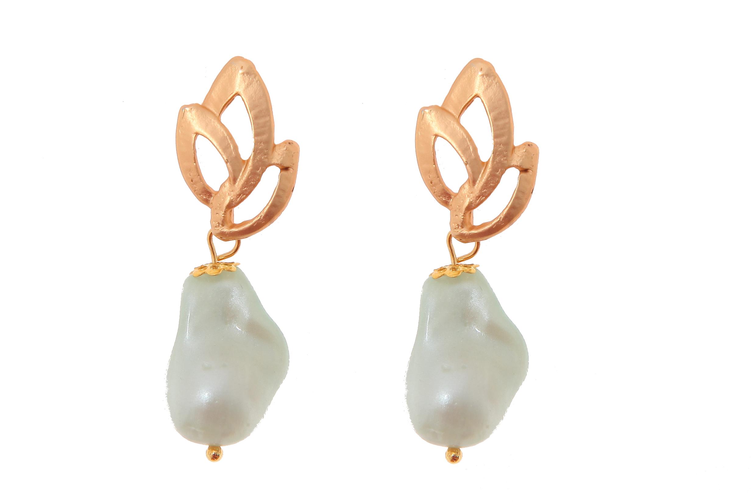 Pendiente de piedras nácar verde agua con cabezal de hojas