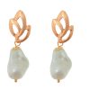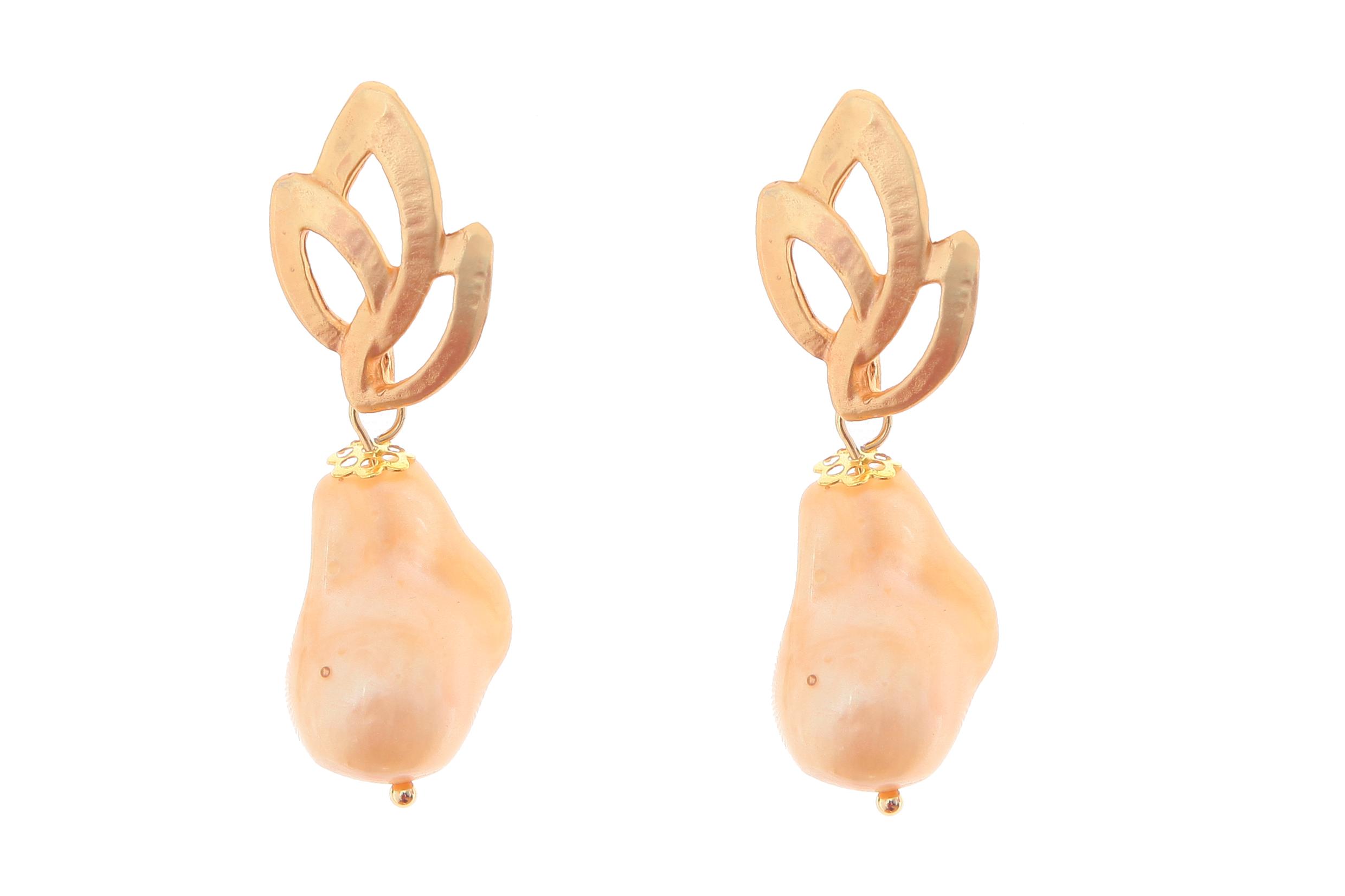 Pendiente de piedras nácar yema con cabezal de hojas. Cierre de tornillo. Medidas 20×50 mm (con cabezal). Fabricado artesanalmente en la provincia de Sevilla.