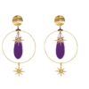 Pendiente dorado de dos círculos labrados, esfera final turquesa y aplique estilo acuarela