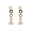 Pendiente dorado de dos esferas marrón con círculo labrado central y aplique dorado labrado