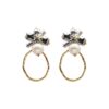 Pendiente dorado de dos esferas verde con círculo labrado central y aplique dorado labrado