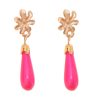 Pendiente lágrima amarillo pálido con cabezal de flor pequeña