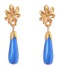 Pendiente lágrima color morado con cabezal de flor pequeña Cierre de tornillo. Medida 15×50 mm (con cabezal). Fabricado artesanalmente en la provincia de Sevilla.