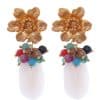 Pendientes de bolas de piedras Ágata multicolor con cabezal de nenúfar
