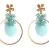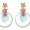 Pendientes de lágrima de oro con bolas de piedra Ágata multicolores y cabezal de flor
