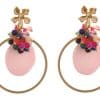 Pendientes de bolas Ágata y lágrimas multicolores en tonos malva con cabezal de aro