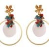 Pendientes de lágrima de oro con bolas de piedra Ágata corales y cabezal de flor