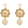 Pendientes de aro con aplique de mosaico de perlas y tres óvalos dorados