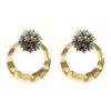 Pendientes de aro dorado con aplique dorado plano y adorno de estrella y lágrima de cristal morada