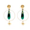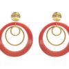 Pendientes de aro, con circunferencia exterior de acetato color magenta, y dos aros interiores de menor tamaño rizados con aplique dorado. Cierre omega. Medidas 7×8,5 (cabezal incluido) Fabricados artesanalmente en la provincia de Sevilla.