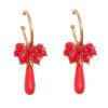 Pendiente de flamenca aro mediano piedras nácar color coral y negro