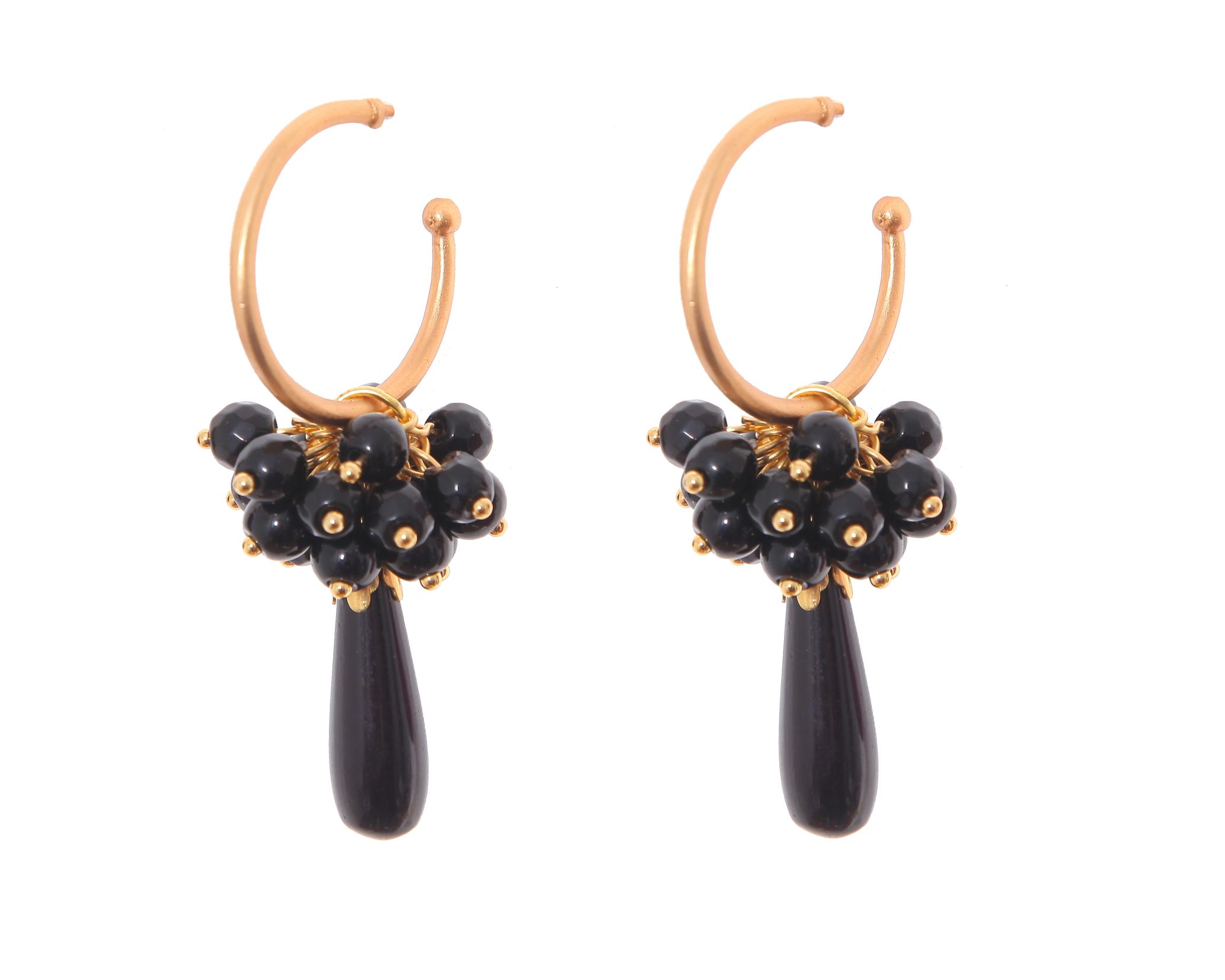 Pendientes de bolas Ágata y lágrimas negras con cabezal de aro