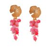 Pendiente de flamenca de lágrima de piedra cristal color rosa frambuesa con cabezal de hojas