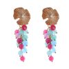 Pendientes de bolas de piedras Ágata multicolor con cabezal de flor