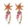 Pendientes de bolas de piedras Ágata multicolor con cabezal de flor