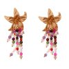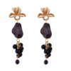 Pendientes de bolas de piedras Ágata multicolor con cabezal de flor