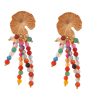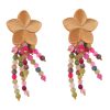 Pendientes de bolas de piedras Ágata multicolor con cabezal de flor