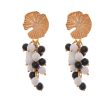 Pendientes de bolas de piedras Ágata y piedras nácar corales con cabezal de hojas