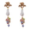 Pendientes de bolas de piedras Ágata multicolor en tonalidad malva con cabezal de flor