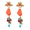 Pendientes de bolas de piedras Ágata y piedras nácar corales con cabezal de hojas
