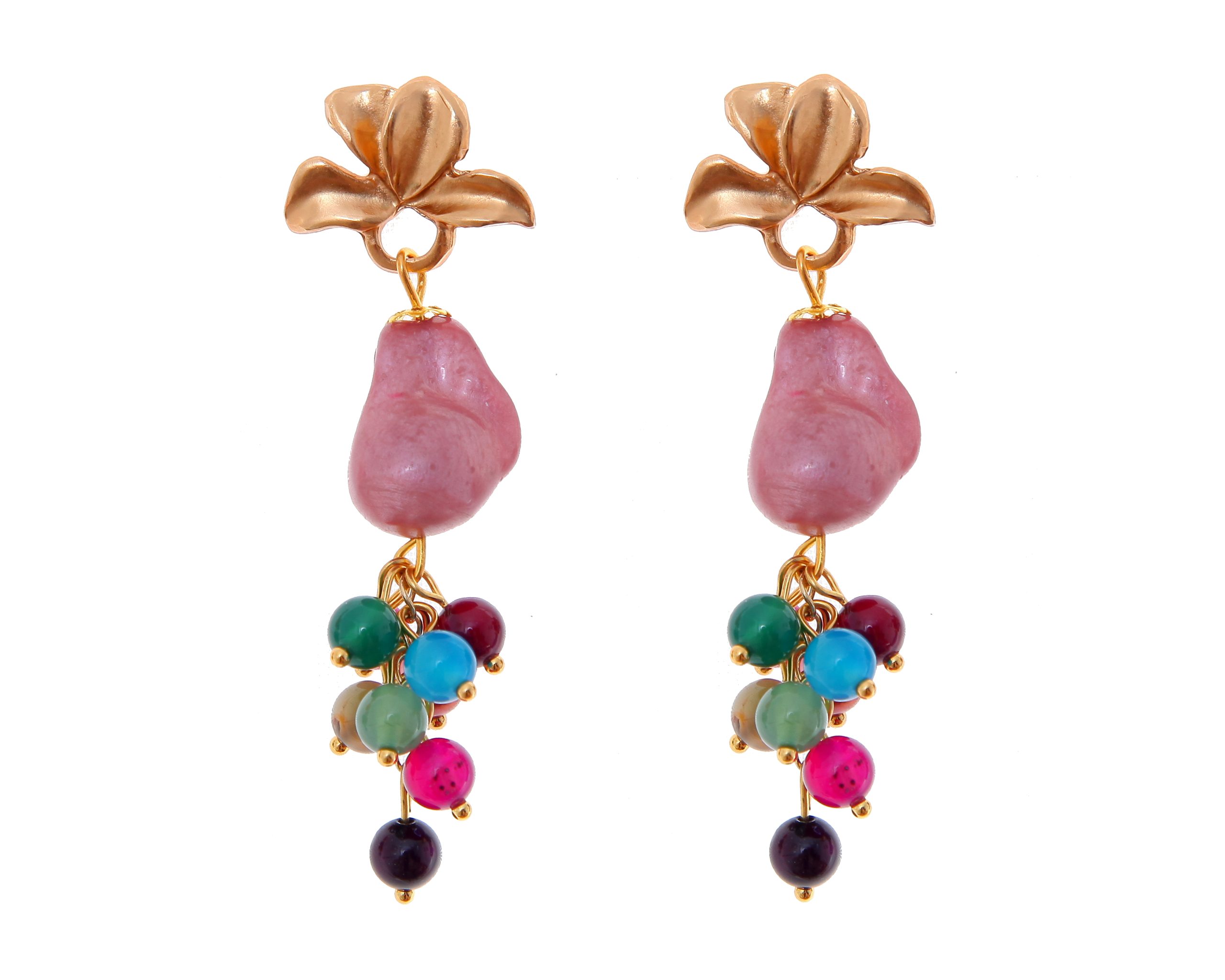 Pendientes de bolas de piedras Ágata y piedras nácar maquillaje y multicolores con cabezal de hojas
