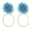 Pendientes de aplique cristal en color Azulina y aro en oro mate. Cierre de omega. Medidas aproximadas ancho x largo, 5,5 x 9 cm (con cabezal). Fabricado artesanalmente en la provincia de Sevilla.