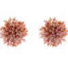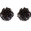Pendiente dorado de dos esferas marrón con círculo labrado central y aplique dorado labrado