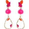 Pendientes en oro mate pintado a mano en morado y rosa. Cierre de tornillo. Medidas aproximadas ancho x largo, 2 x 7 cm (con cabezal). Fabricado artesanalmente en la provincia de Sevilla.