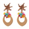 Pendientes de bolas de piedras Ágata multicolor con cabezal de flor